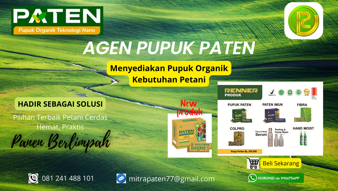 PT. RENNER INTI INTERNASIONAL menghadirkan sebuah produk kebutuhan petani dengan Pupuk Organik Teknologi Nano bernama PATEN, yang merupakan hasil penelitian selama kurang lebih 13 tahun oleh ahli dibidang pertanian.